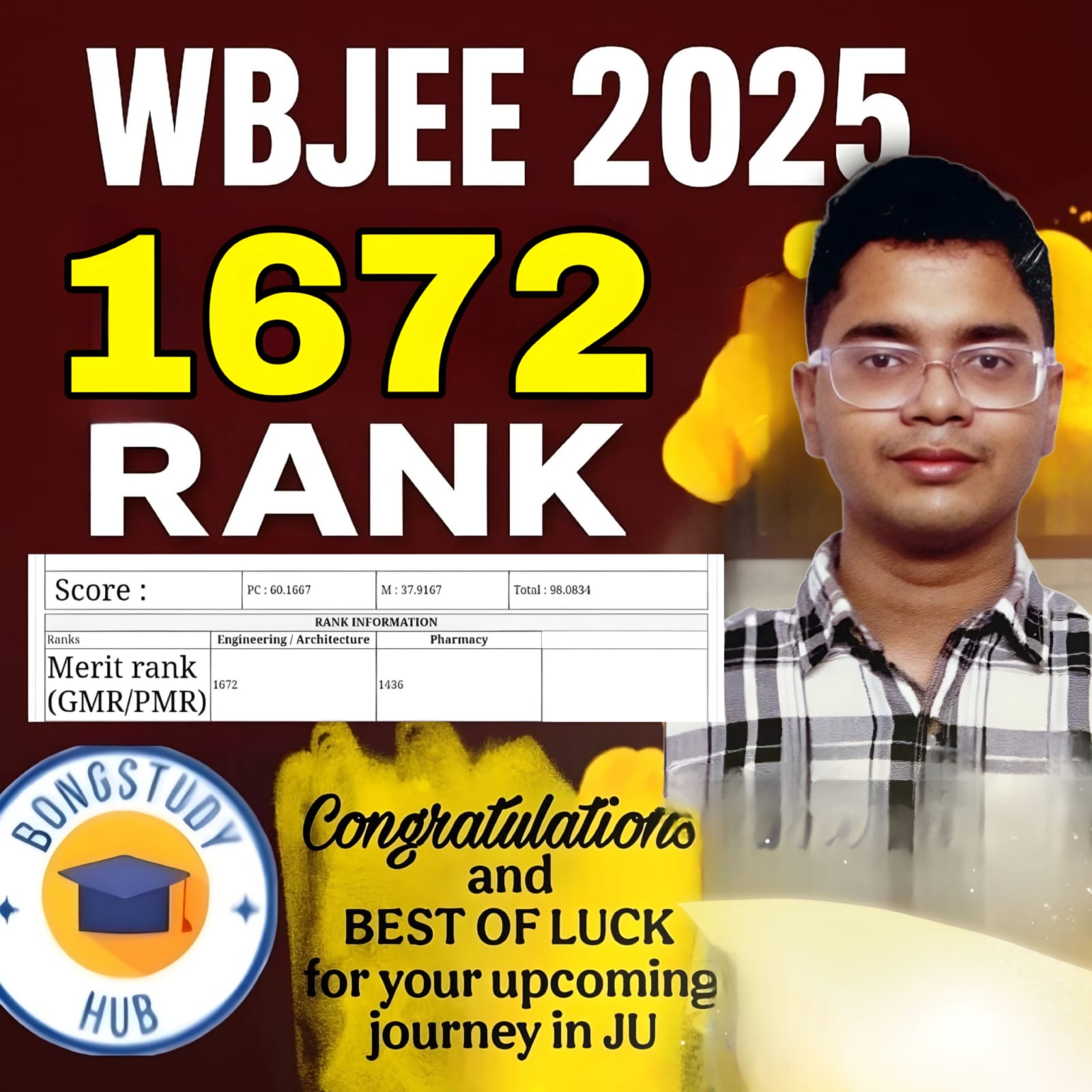 TO BE TRUE. ARNAB DA. TEST SERIES ONL RELEVANT CHILO. AND ESPECIALLY CLASS GULO. SOTTI ONK HELPFUL CHILO. Amr WBJEE te ei j marks ta eseche. Tar onk tai credit tomake jai. Thank u for being with us, and er hope that BONG STUDY HUB WILL BE REALLY HELPFUL TO THE FUTURE ASPIRANTS Bong study hub er jonoi. Amr JU er sopno. Fulfill hote choleche 😍😍😍